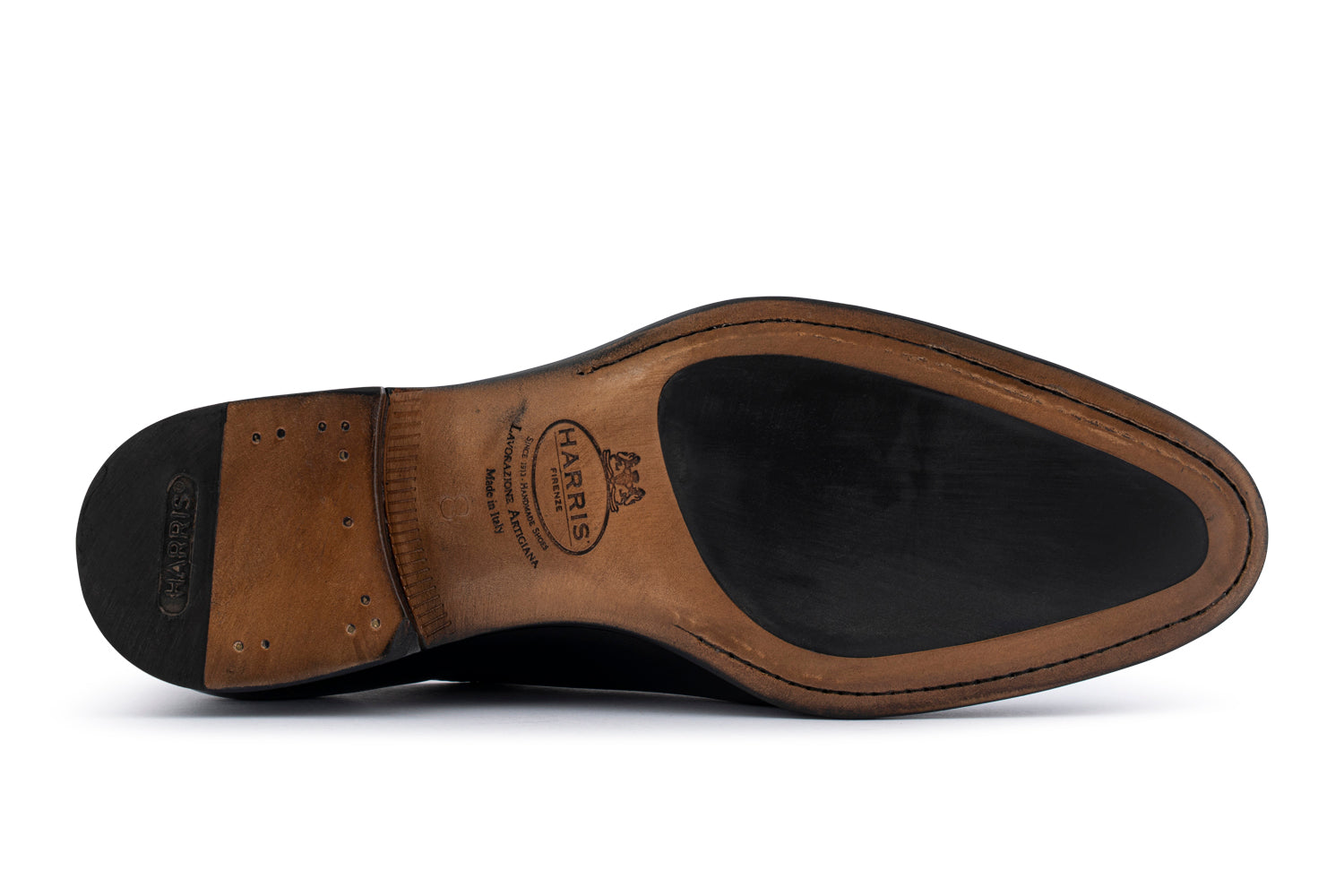 Francesina realizzata in pelle di vitello liscio pieno fiore, dipinta a mano con raffinate sfumature che rendono ogni modello unico. Il modello costruito secondo la lavorazione Blake Rapid è completato dalla suola in cuoio con inserti in gomma antiscivolo per garantire stabilità e comfort.