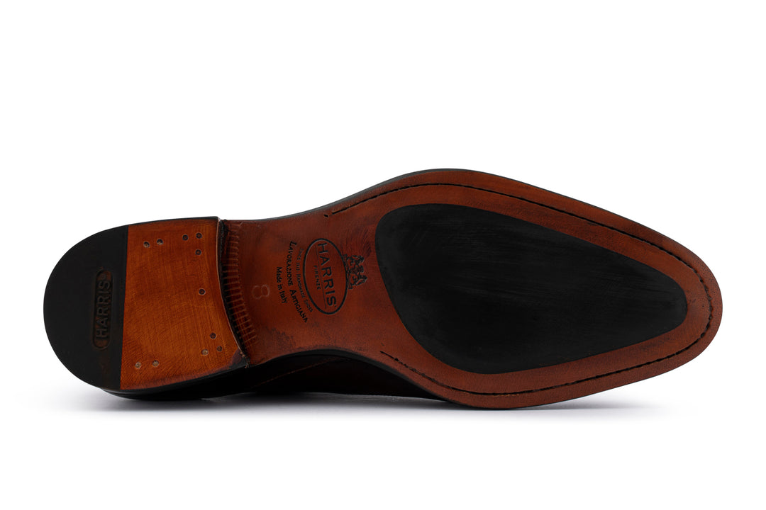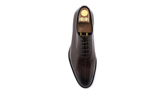 Linee essenziali e finiture impeccabili definiscono questa francesina in pelle di anguilla marrone testa di moro, impreziosita da sfumature scure che ne sottolineano la profondità. La tomaia intera senza cuciture e la lavorazione Blake Rapid rivelano una maestria discreta ma decisa, per un’eleganza autentica e duratura.