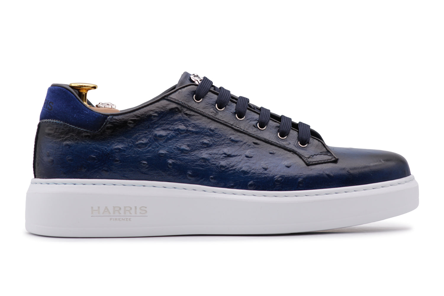 Full-grain leather printed with an ostrich effect and hand-painted, enriched with suede details. The beige cassette sole coordinates the aesthetics for an extremely refined result.