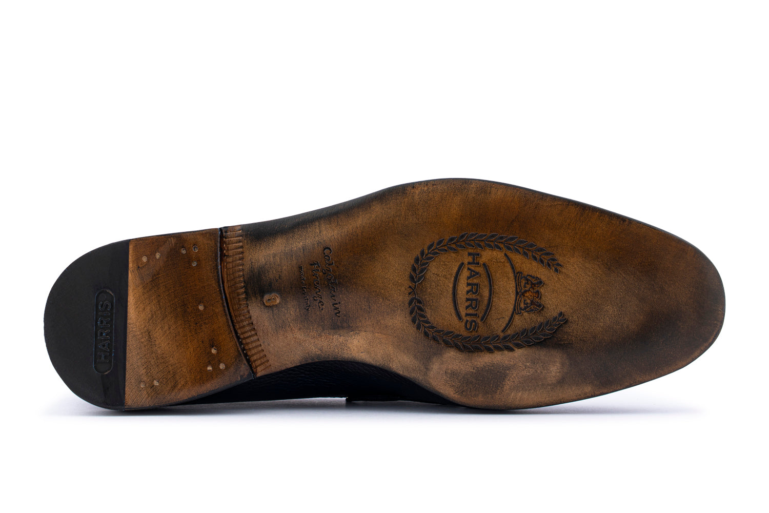 Mocassino sfoderato in morbidissima pelle effetto alce, dipinta a mano con profondi dettagli scuri. Leggerezza estrema grazie alla suola in cuoio e flessibilità garantita dalla lavorazione Blake Rapid.