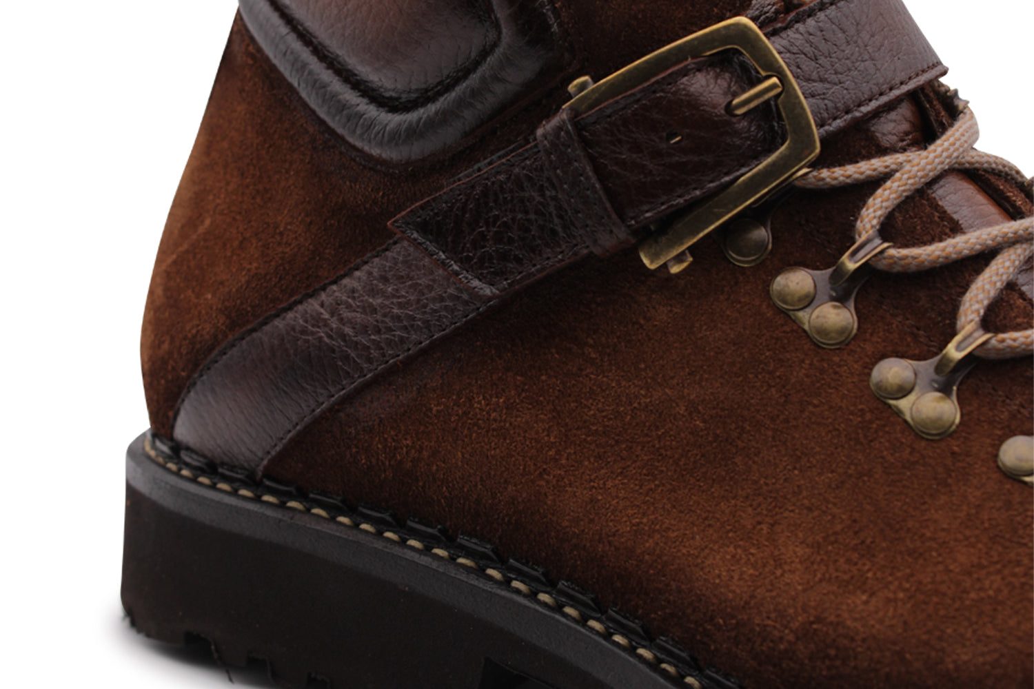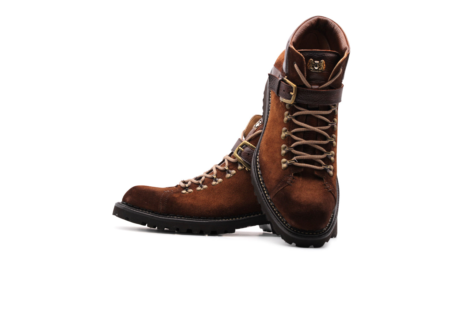 Polacchino in suede color bruciato con sfumature scure realizzate a mano, dettagli in pelle e suola carrarmato. La costruzione Blake Rapid garantisce un equilibrio ideale tra robustezza e raffinatezza.