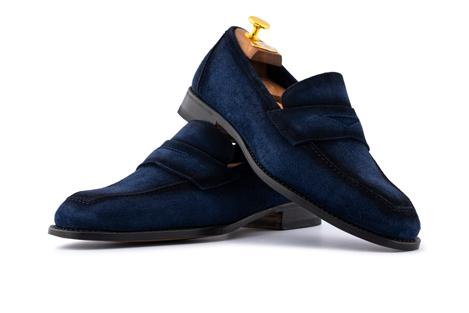 Pelle scamosciata blu notte, sfumata a mano per un effetto cromatico magnetico. Dotato di passante in camoscio e suola in cuoio leggero antiscivolo, è il perfetto equilibrio tra stile formale e comfort Blake Rapid.